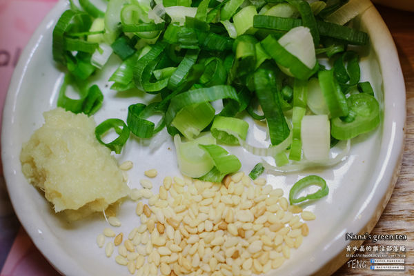 ↑小疊子上有蔥、芝麻和蒜泥,作為配料之用!