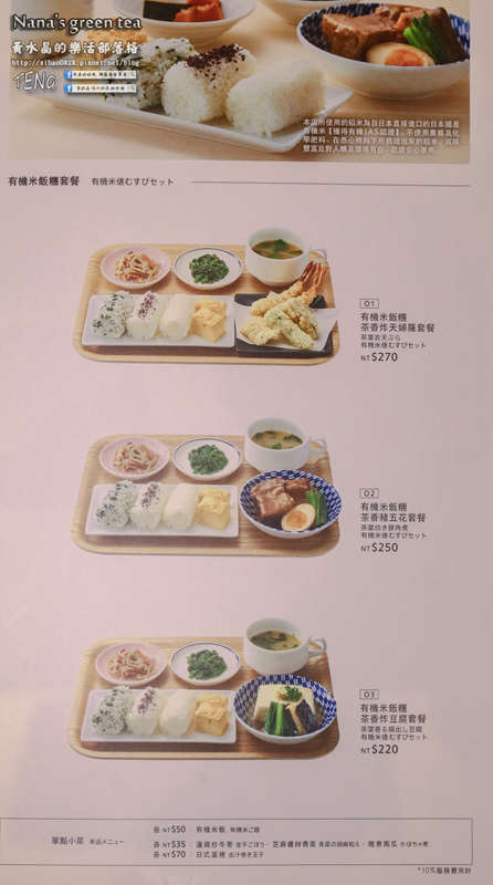 除了各式抹茶類甜點飲品,還販售了簡單的定食。