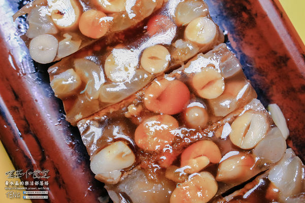 其實是豬皮加熱冷卻後和花生結成了凍唷!