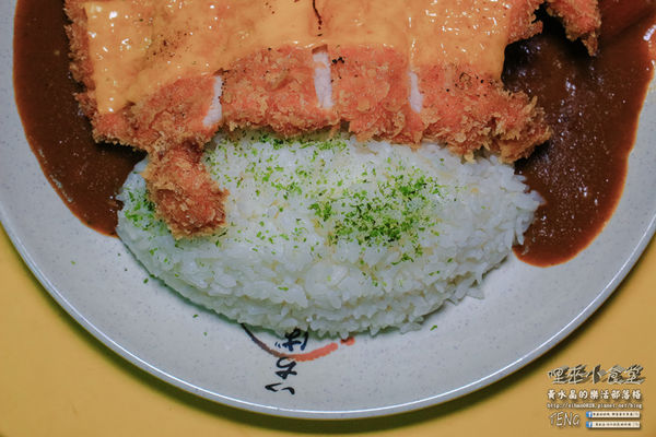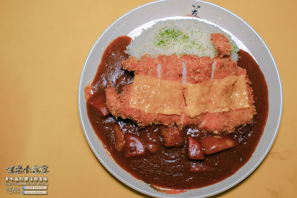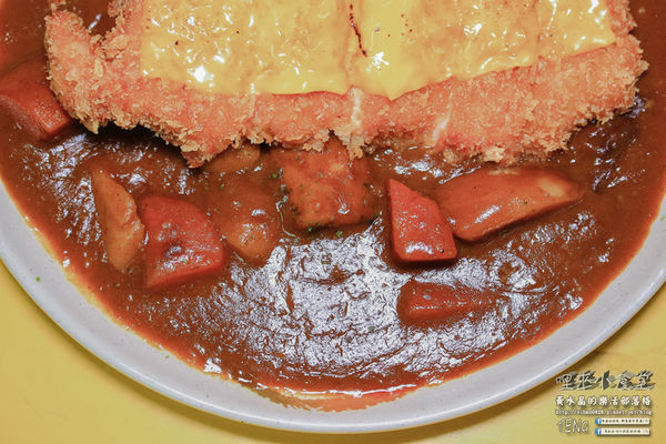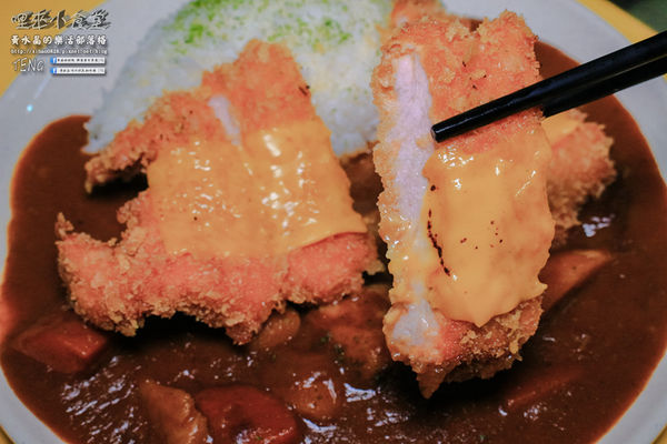 日式的咖哩豬排份量頗大的,上頭還加了超司啊!