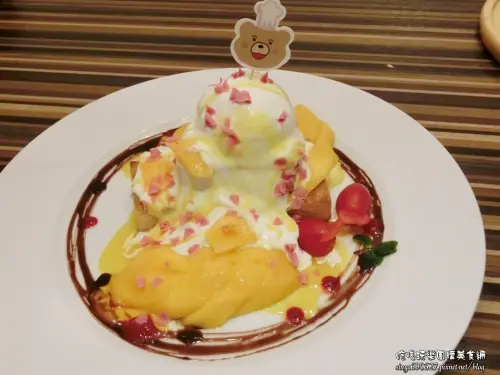 蛋糕體外層吃起來微酥,內層軟綿濕潤,搭配香草冰淇淋一起吃,冰火交融的口感,讓人忍不住一口接一口的吃下去~