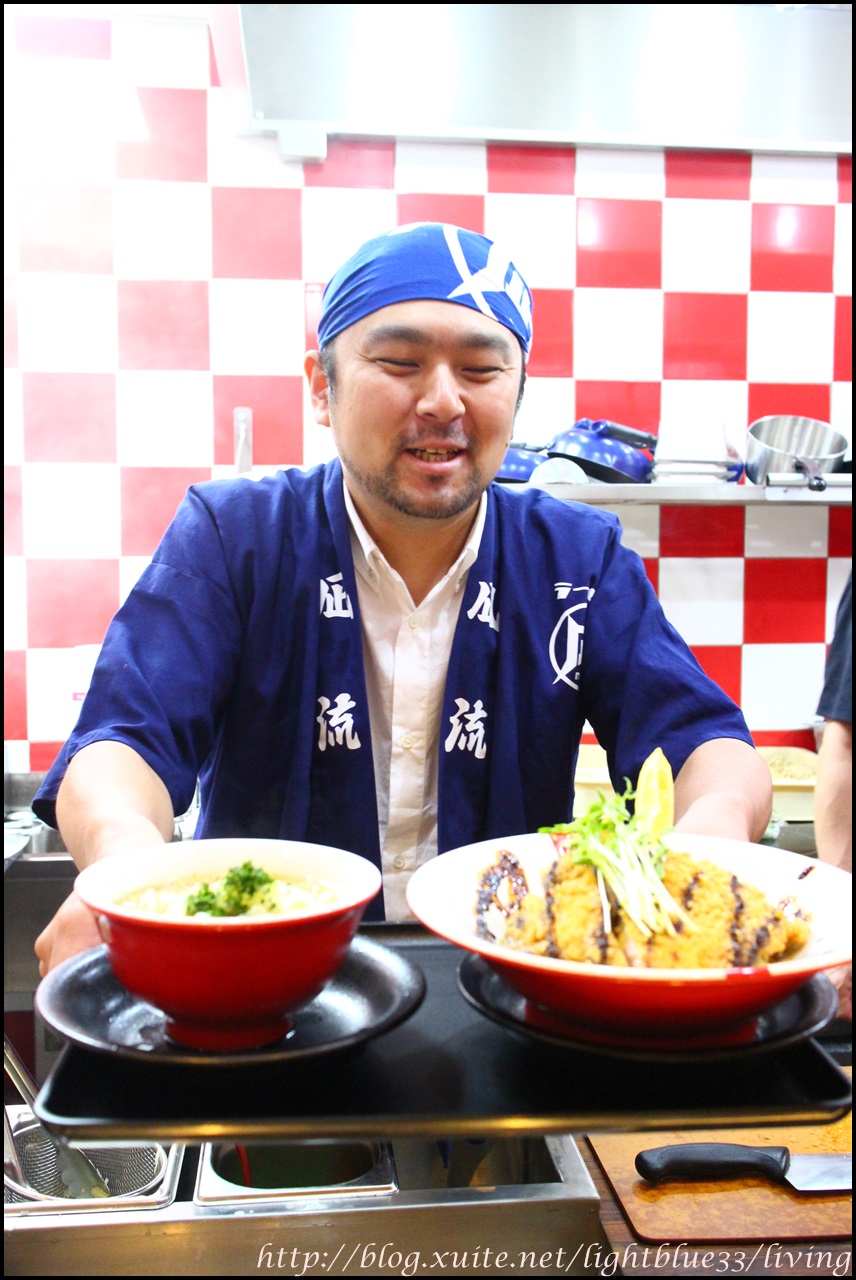 就在起落之間,不一會兒功夫,豬排沾麵就完成啦!