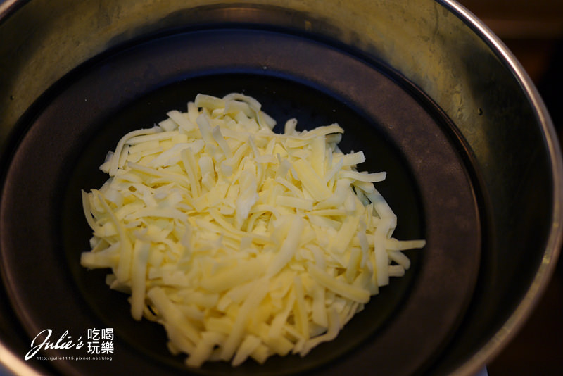 ↑最後在把飯鋪平,起司撒上去,就大功告成囉!