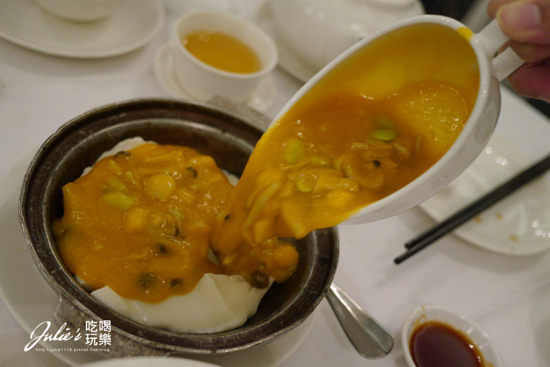 ↑很濃稠的南瓜醬汁,鹹鹹甜甜的在搭配上豆花,說真的我不太習慣這樣的料理。