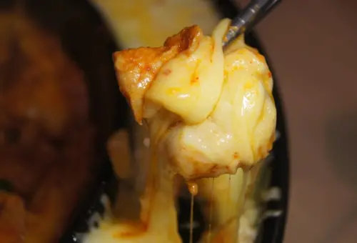 濃郁的起司隨著李光洙春川炒雞鍋的拌炒下,漸漸融化,
