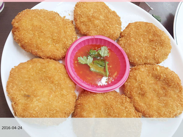 厚度很厚內餡蝦肉確實飽滿的〔月亮蝦餅〕MENU上是寫泰文啦!但看圖沒人不認識它的阿!