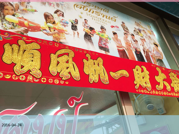 店家外頭這個潑水節廣告看版真的很特別耶!