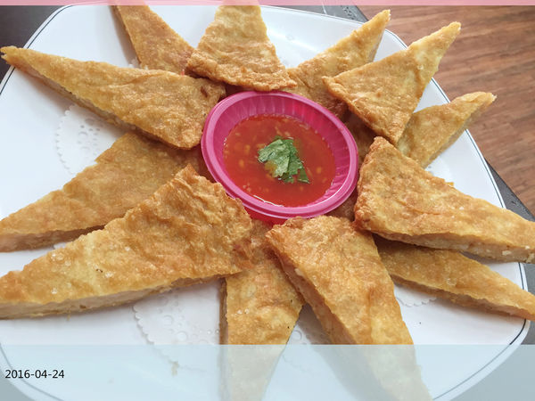 結果這盤外型與月亮蝦餅完全不相同的不知名炸餅,吃起來的口感居然跟月亮蝦餅頗相似,老公比較