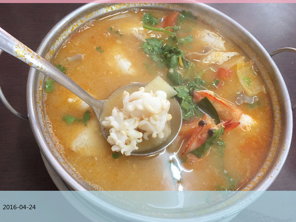 不知道為什麼我覺得來到泰式料理店都會想點的一道,〔酸辣蝦湯〕