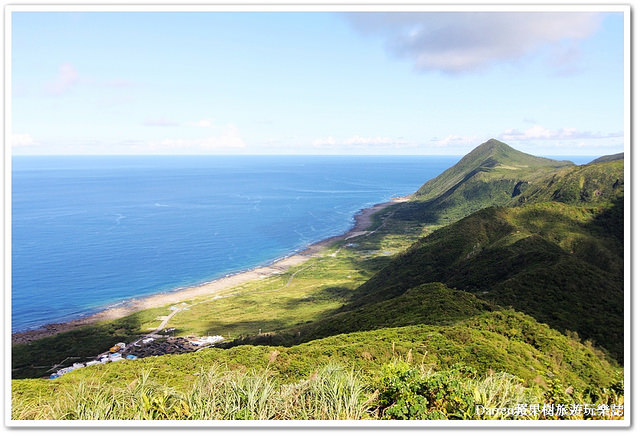 天氣超好視野遼闊美麗的海岸線,仔細瞧黑色的那塊就是野銀部落半地下屋屋頂