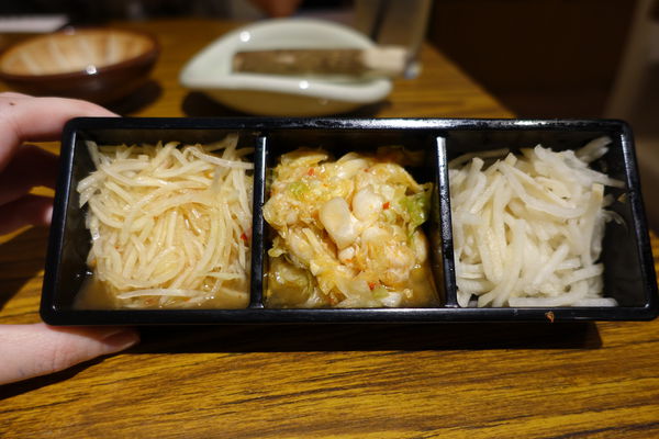店員迅速送上依人數份量的三樣小菜囉,這是2人份!!!!