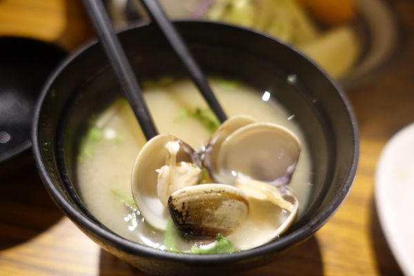 味噌湯有野菜和蛤蜊兩種底可以選,蛤蜊數量給的蠻多,