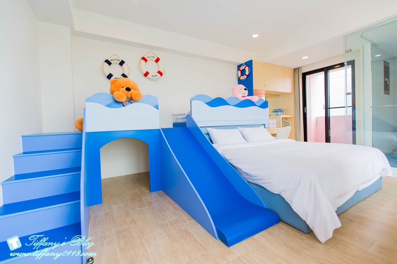 所以就把這間房間設計成海洋風的親子房~~