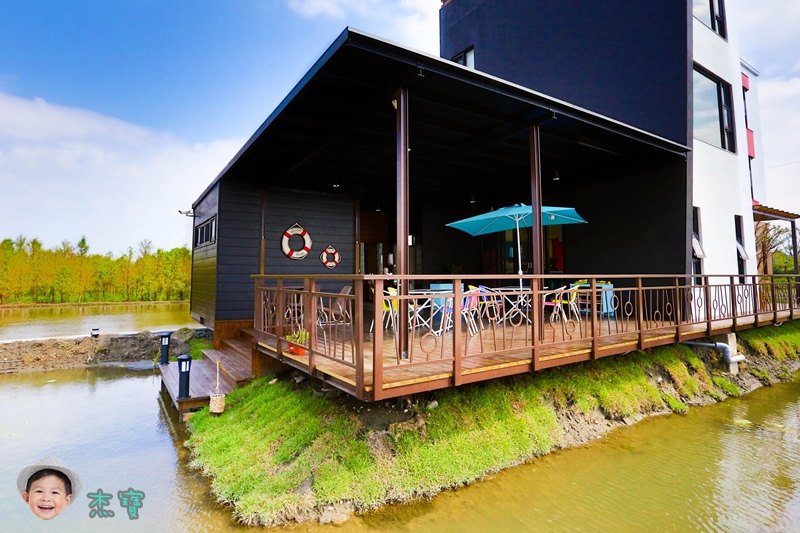 後方有一個生態池