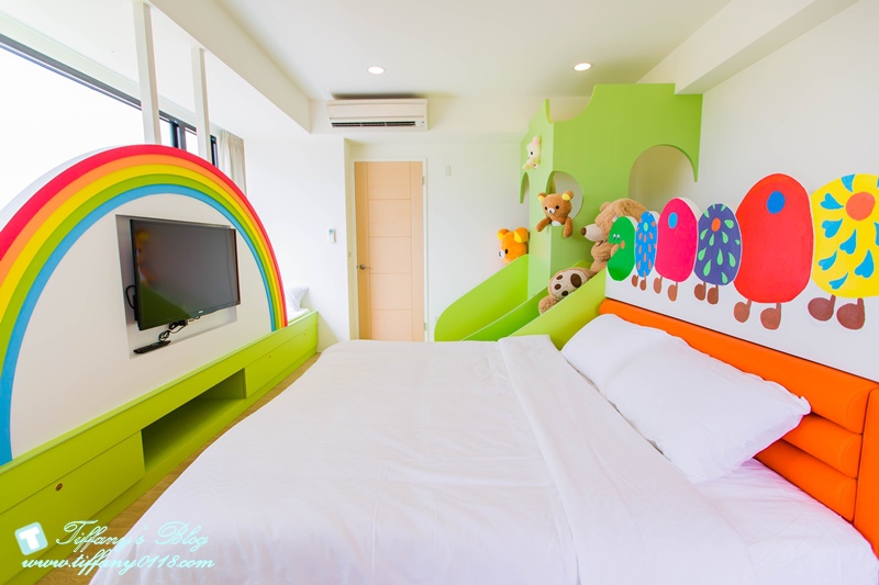 配上彩虹的元素讓這間親子房格外吸引人~