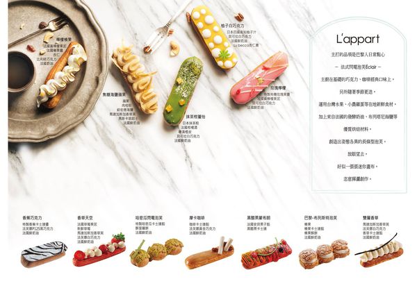 歐洲公寓風的設計,L'appart主打的品項是巴黎人日常點心「法式閃電泡芙Éclair」