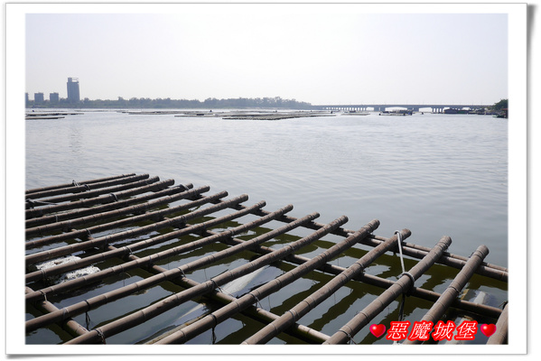 繼續搭觀光船,前往今天的最後一個行程 - 蚵棚,抵達前可以看到連接四草與安平的跨海大橋,導覽員說橋另一頭的安平是開店做生意居多,比較繁華,四草則大多是養殖漁業,比較淳樸,沒想到僅僅一座橋的區隔,卻是兩樣完全不同的風俗民情呢!
