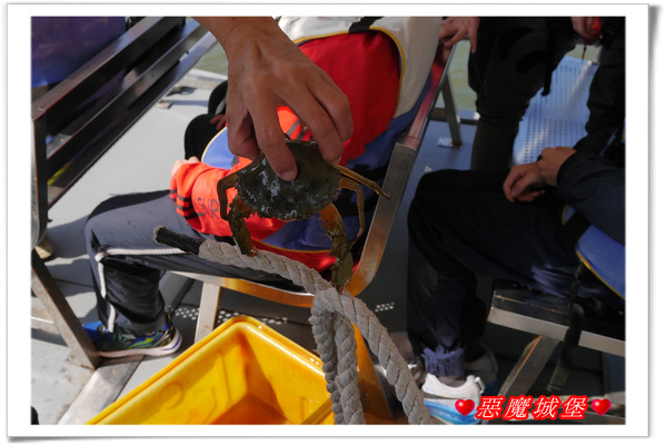 漁網裡頭捕到了一隻螃蟹,導覽員開玩笑說要給我們中午加菜,呵呵,最後還是把牠放回了大海!