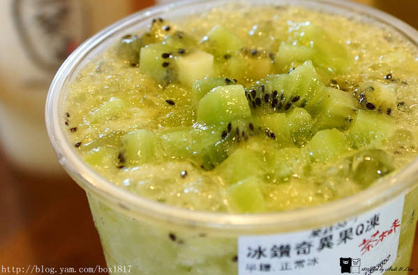 冰鑽奇異果Q凍,有1顆半奇異果的加上愛玉,除了能喝到奇異果果肉,