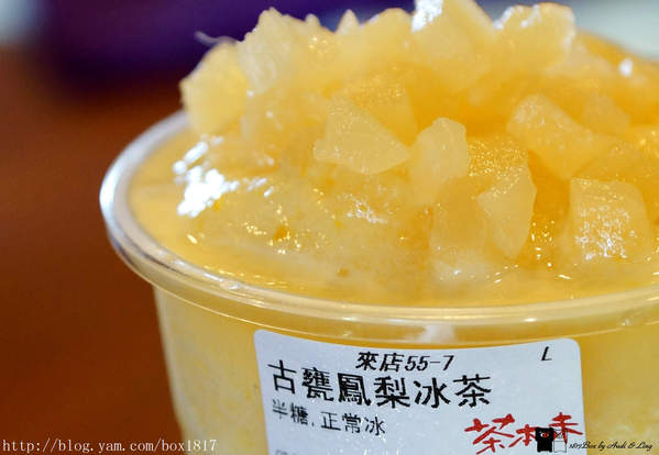 古甕鳳梨冰茶,茶本味利用當季盛產的水果推出茶飲,讓我們在喝茶飲的同時也能吃到水果,