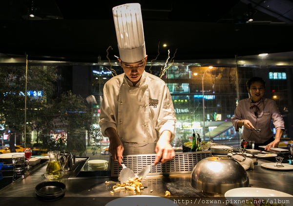 主廚在煎完主餐後,即告知他的任務已達成,詢問完客人對料理的滿意度後,