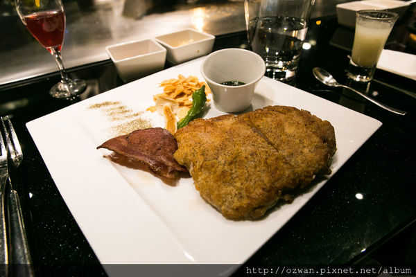 帶有厚度的牛排,還看得到肉質的粉嫩,又是一門功夫料理啊!