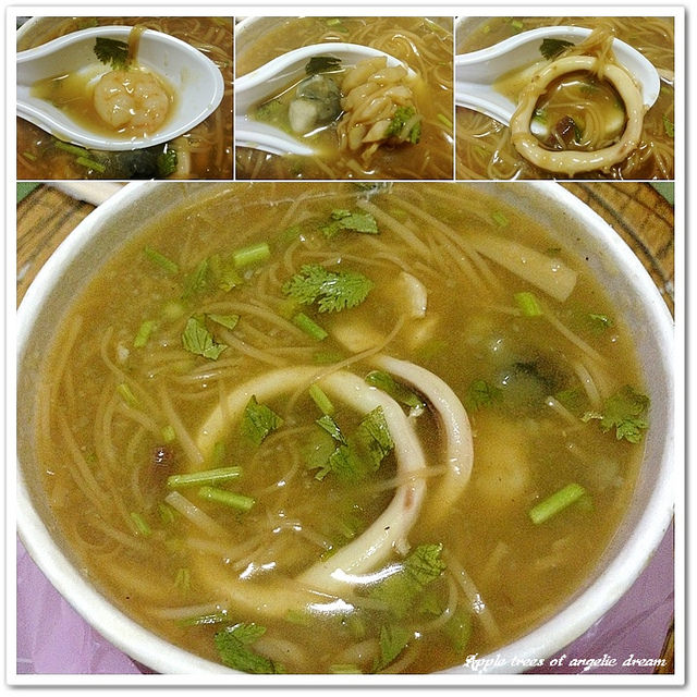 立馬拍完給他吃下去,麵線是手工麵線有粗有細,湯頭帶點鮮味吃起來很順口