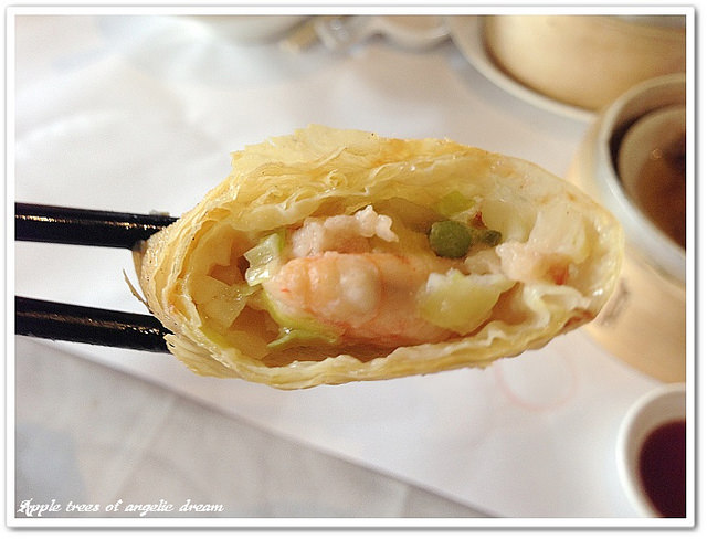 腐皮吃起來香酥爽口,裡頭包著蝦仁個頭也不小鮮美不油膩