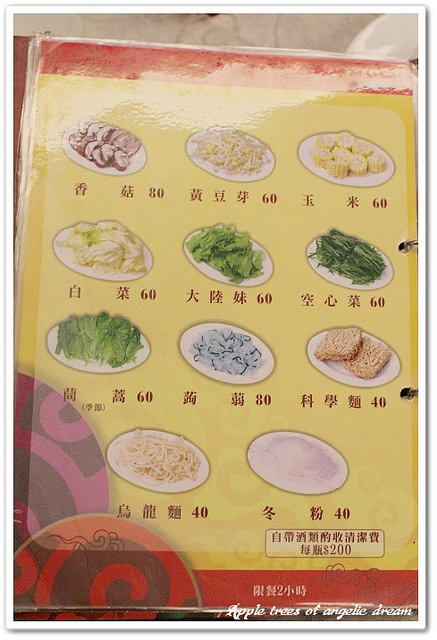 肉類單點價位210~300元有牛肉、豬肉、羊肉、鴨肉