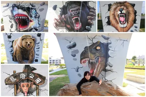 四週立有中國傳統觀察天象的4種代表動物,分別是東方的蒼龍、西方的白虎