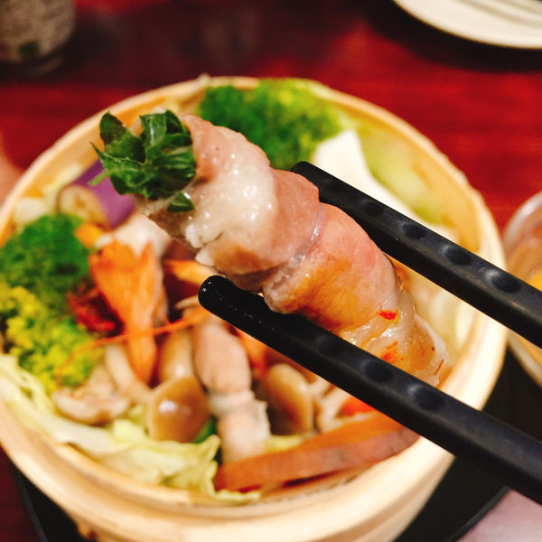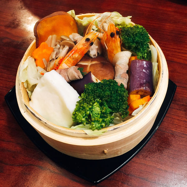 吃完剛剛罪惡的美食可以吃一點健康的蔬菜!這是以大量的蔬菜放到蒸籠裡蒸食,可以保留蔬菜原味的鮮甜,在沾上一旁的和風芝麻醬,清淡爽口,一種像在吃日式版溫沙拉的感覺