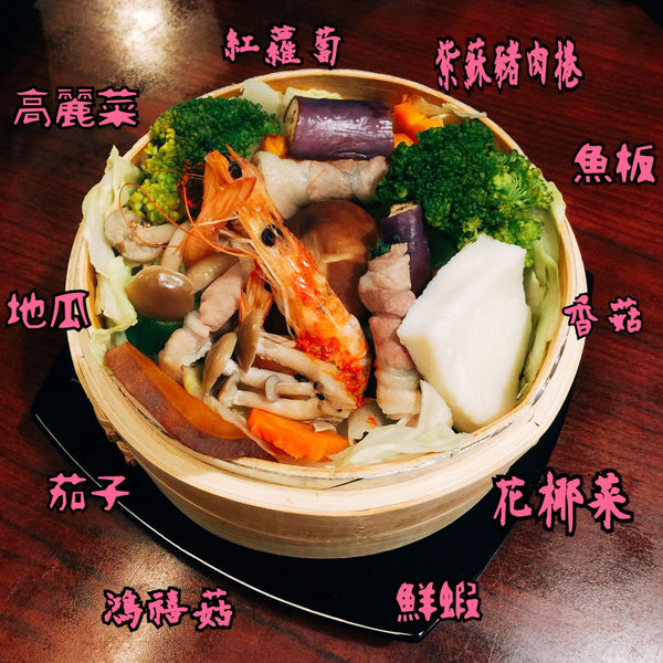 裡頭的食材包含:紅羅蔔、紫蘇豬肉捲、魚板、香菇、花椰菜、鮮蝦、鴻禧菇、茄子、地瓜、高麗菜,非常營養健康!