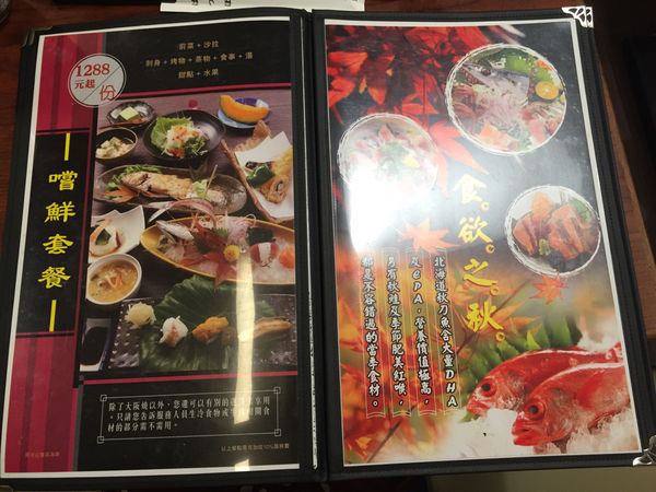 也有套餐式的餐點,一整份是1288包含了:前菜、沙拉、刺身、烤物、煮物、食事、甜點、水果,讓我聯想到了東街日本料理