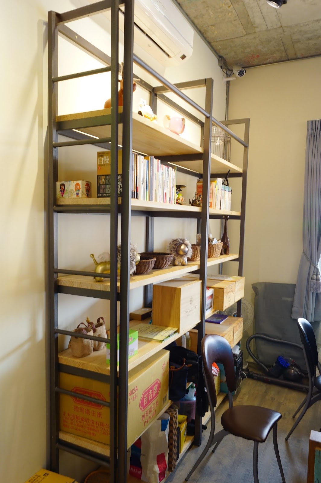 沙發後方的書架,是老闆請鐵工做完外框,自己再去木材行挑材料自己來處理的,完成度真的不輸外面設計家具