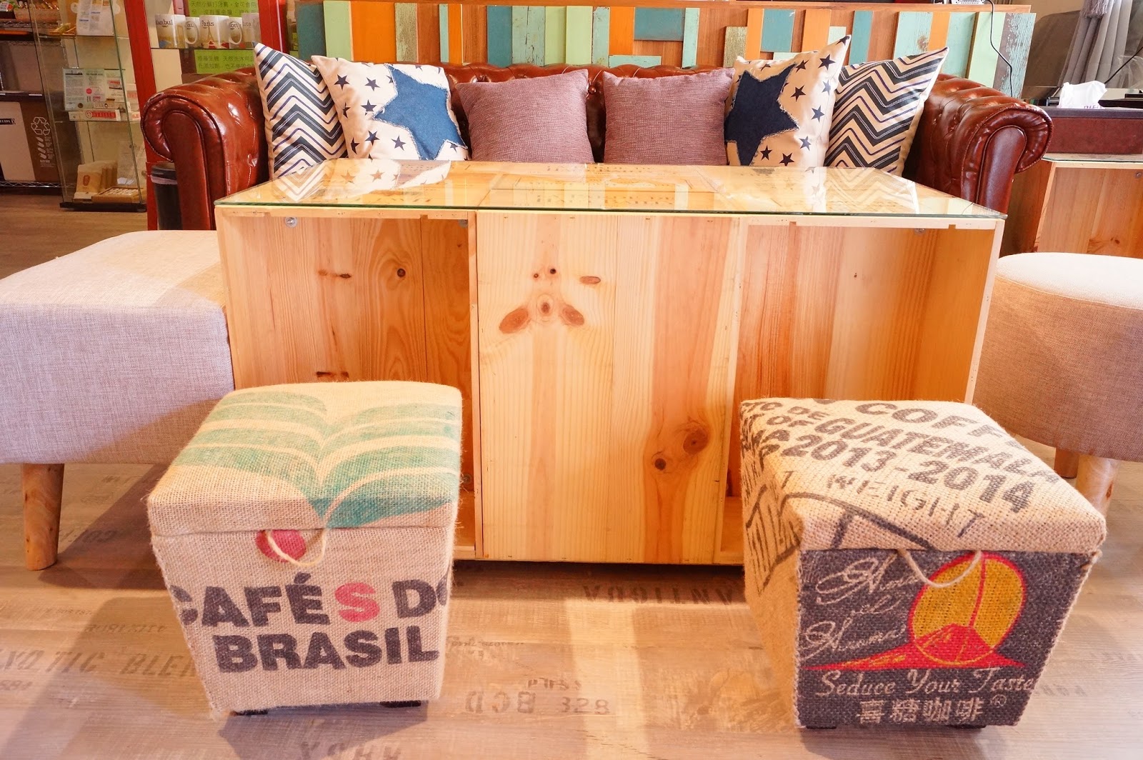 原本破爛幾乎要被丟掉的舊凳子,再經過老闆的巧手包上麻布跟圖案後,根本就像外面賣的家具啊!