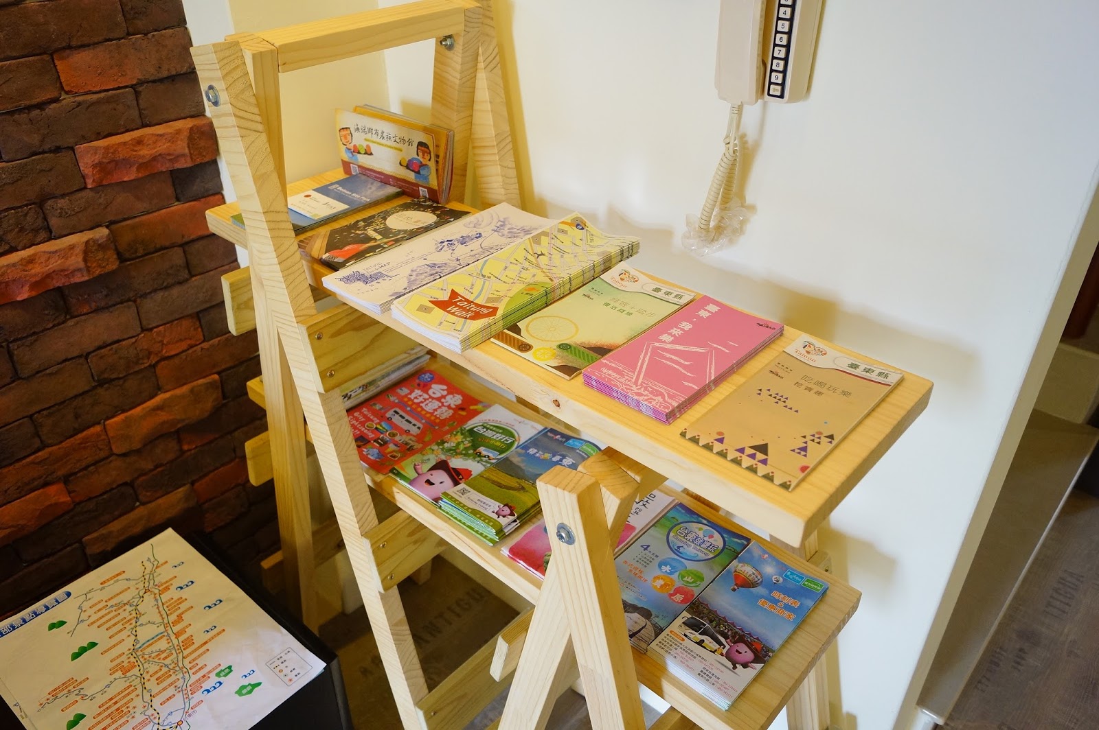 這個手工木架上,也放了很多台東旅遊資訊,都免費提供給第一次前來台東旅遊的客人。