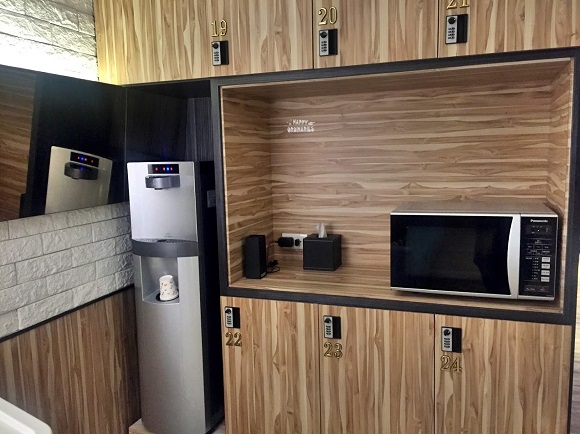 旁邊還有微波爐和飲水機,然後還有,更多的置物櫃XDD