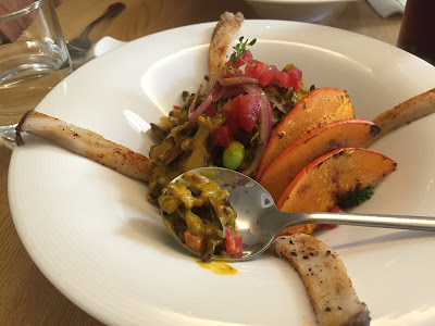 再來我真的要大肆稱讚這個雞肉,表面煎得恰到好處,新鮮軟嫩的雞肉又吸收了鮮甜的南瓜醬汁,配上黑野米一起送入口裡,燈愣~葛萊分多加50分!
