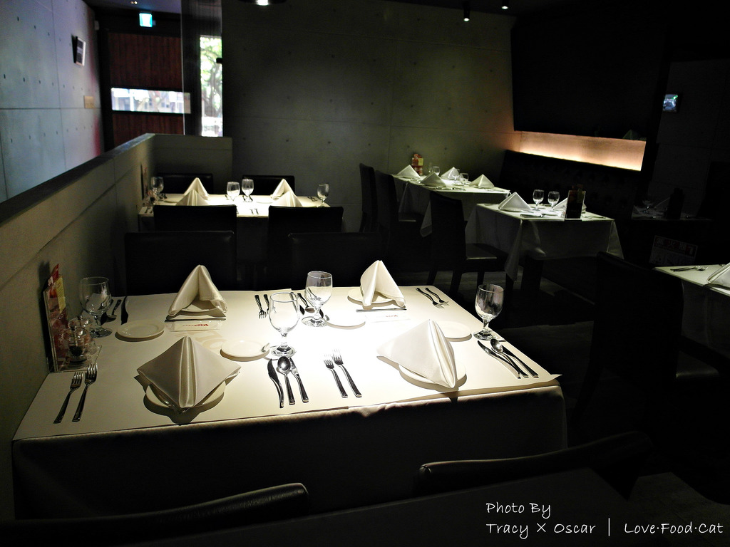 ↑簡潔的設計,座位間適當的距離,對於餐具的擺設也十分要求一致。