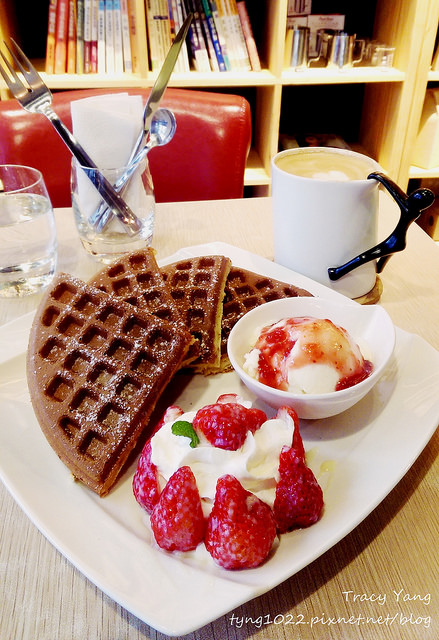 2015年初第一次來點的草莓冰淇淋鬆餅和熱拿鐵♥已經開始想念草莓了:'(