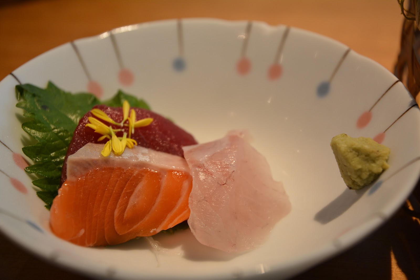 前菜中的生魚片份量很迷你,但由於鮮度與口感都是一流,讓人每一口都吃得很滿足!