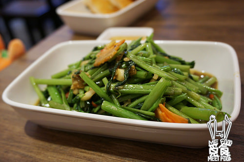我們這次點的四道菜分別是椒麻雞、月亮蝦餅、辣炒空心菜跟雲南大薄片