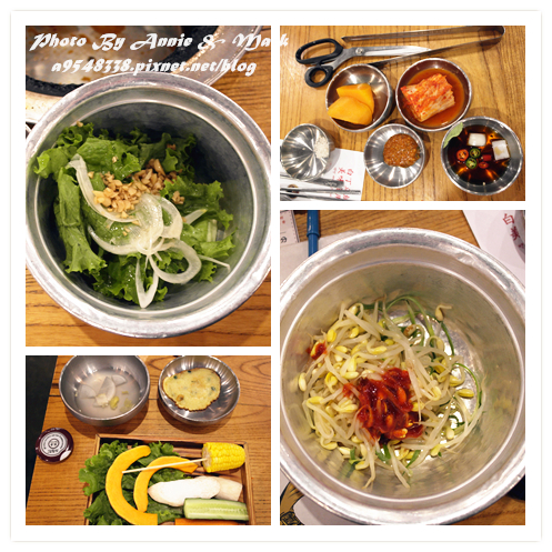 尤其是涼拌生菜(左上)和涼拌豆芽菜(右下)非常開胃,