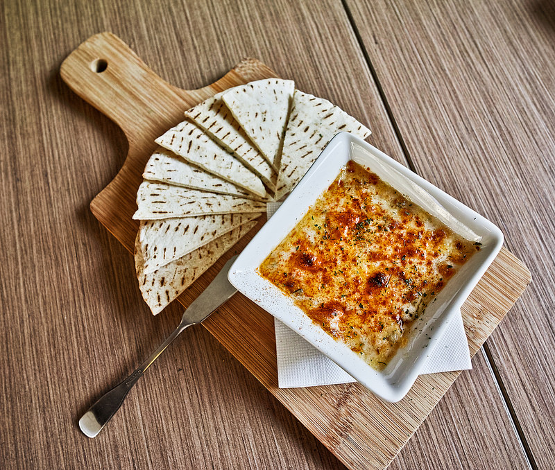 建議必點的一道, 燻鮭魚搭配起司與墨西哥辣椒, 放到pita 餅內吃, 微辣好吃