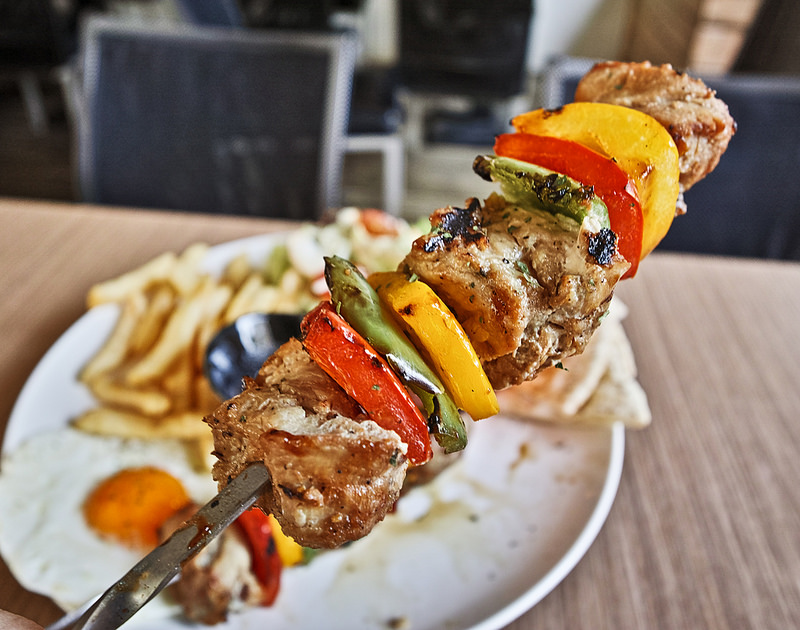 烤的很棒的烤雞肉與彩椒串在一起, 好吃, 搭配優格醬或主廚特製的賽卡辣醬都好吃,個人覺得直接吃也很棒