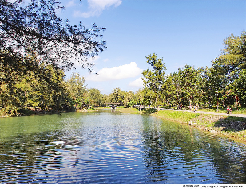 湖的對面也有不一樣的景緻 兩旁種植了防風的木麻黃