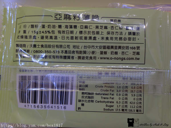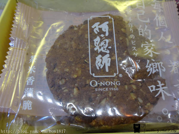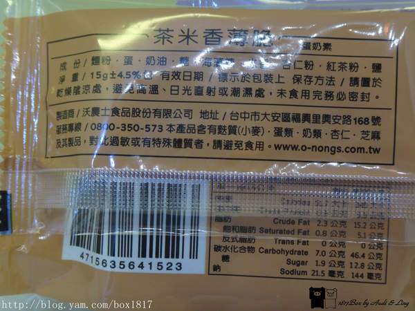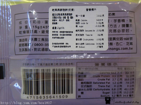 (店家使用非手工乾果燕麥脆餅包裝紙包裝,但包裝背面有貼產品說明)