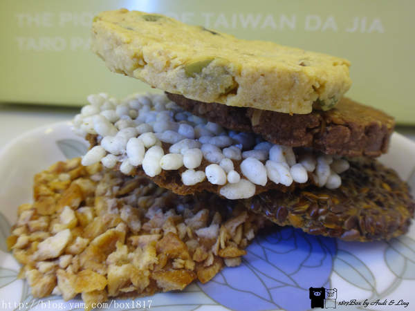 綜合薄脆餅乾禮盒,一共推出三種口味,口味包含亞麻仁、芋頭與日月潭紅茶,散發出的獨有香氣,讓每一口除了酥脆的好滋味,更多了一份幸福感。