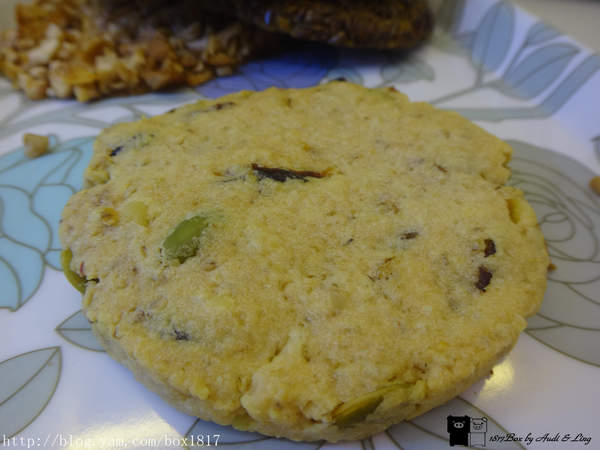 手工乾果燕麥脆餅,是以蔓越莓乾做為基礎味道的來源,再加上高纖維的燕麥增加香氣與口感,