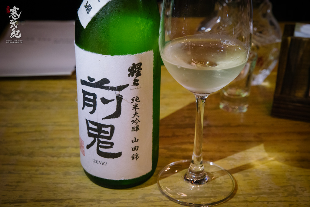 前鬼-純米大吟釀(380元):今晚小白為包子爸挑選的第一支清酒就是很適合開胃的前鬼~純米大吟釀的口感自然非常的清爽順滑,香甜爽口,帶著豐富的花果香氣,相當迷人的一杯酒!